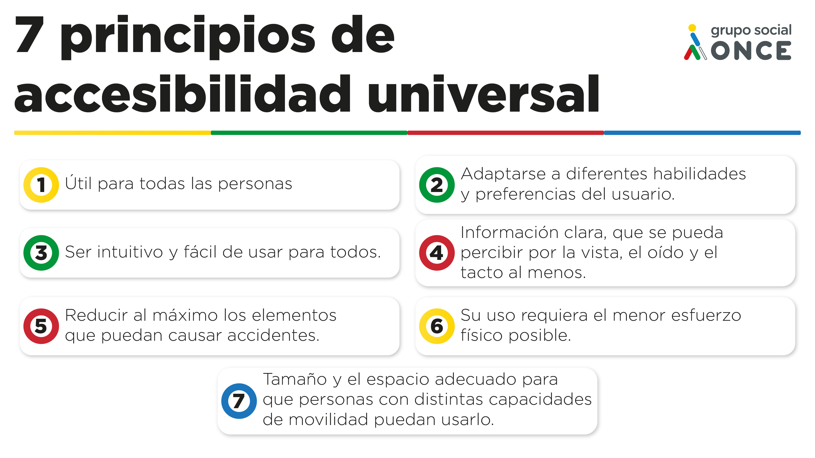 Cualquier diseño inclusivo y que facilite la accesibilidad para todos sigue al menos estos principios: