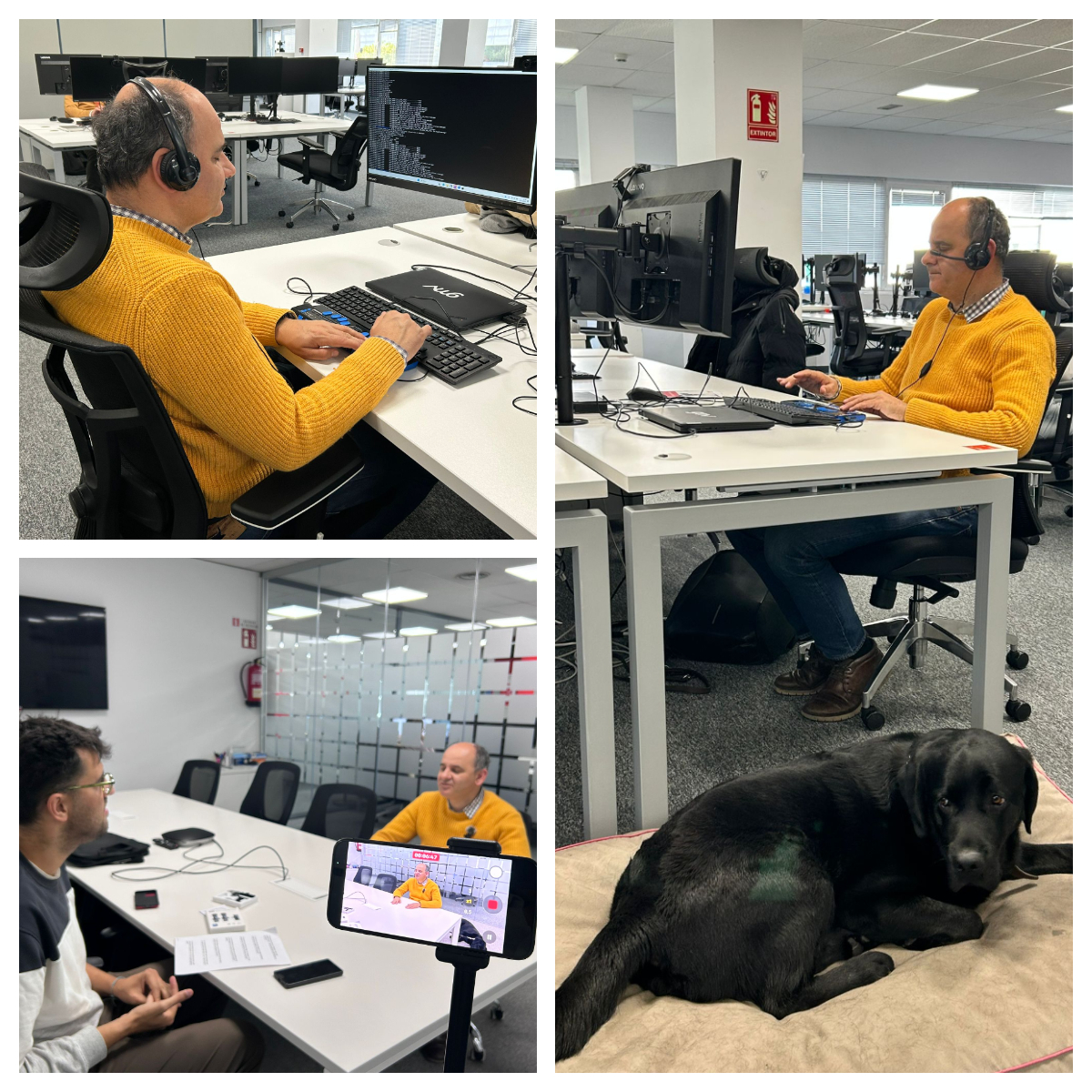 Su día a día como profesional es, en muchos aspectos, el de cualquier programador que trabaja en un gran proyecto tecnológico. Alterna jornadas de teletrabajo desde casa con días en la oficina, pero en ambos casos la dinámica es similar: ordenador, correo, reuniones y muchas líneas de código. Forma parte de un equipo multidisciplinar con tareas asignadas y comienza la jornada planificando tiempos y prioridades. Después se sumerge en la programación, la revisión de código, la documentación y el seguimiento de los sistemas del centro de control, todo ello con el apoyo de un lector de pantalla y de una línea braille que le permiten “ver” lo que otros ven con los ojos.